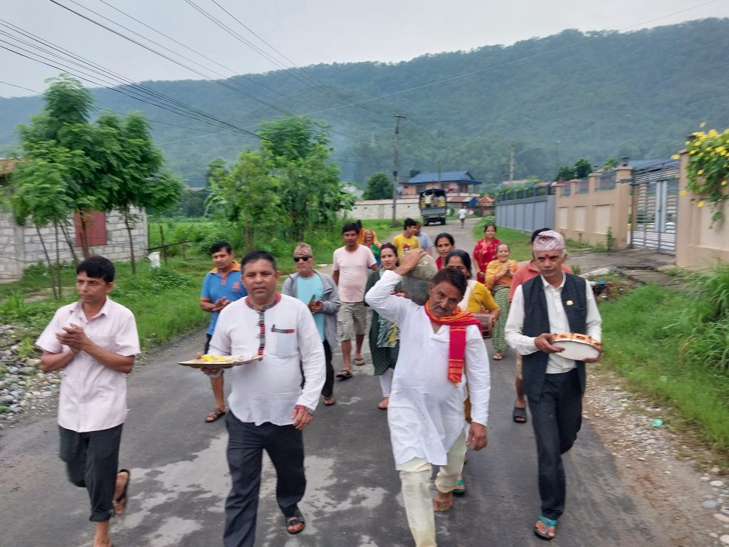 कार्यक्रमका क्रममा भक्तजनहरूले दूध, फूल, अक्षता र प्रसाद अर्पण गर्दै विशेष पूजा गरेका थिए। यस अवसरमा हरि ॐ सत्संगका प्रतिनिधिहरू तथा स्थानीय अगुवाहरूको पनि उपस्थिति रहेको थियो। उनीहरूले धार्मिक परम्परा संरक्षण गर्दै सबैको साझा भावनाअनुसार नयाँ थान निर्माण गरिएको बताउँदै यसले सामुदायिक एकता अझ सुदृढ हुने विश्वास व्यक्त गरे।